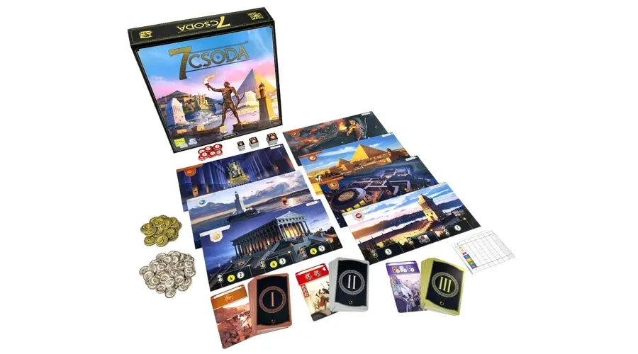 A 7 Csoda – 2. kiadás különlegessége, hogy egyszerre pörgős és mély: a szabályai könnyen tanulhatók, egy parti kb. 30 perc, közben mégis sokféle stratégia működik. Nem véletlen, hogy világszerte a „belépő” stratégiai társasjátékok egyik etalonja.
