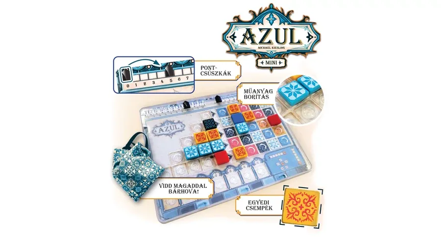 Ha már ismered az alap Azul társasjátékot, az Azul Mini szinte ugyanazt az élményt adja, csak kisebb méretben és mozgásbiztos kivitelben. Ha nem ismered, tökéletes belépő az Azul világába.